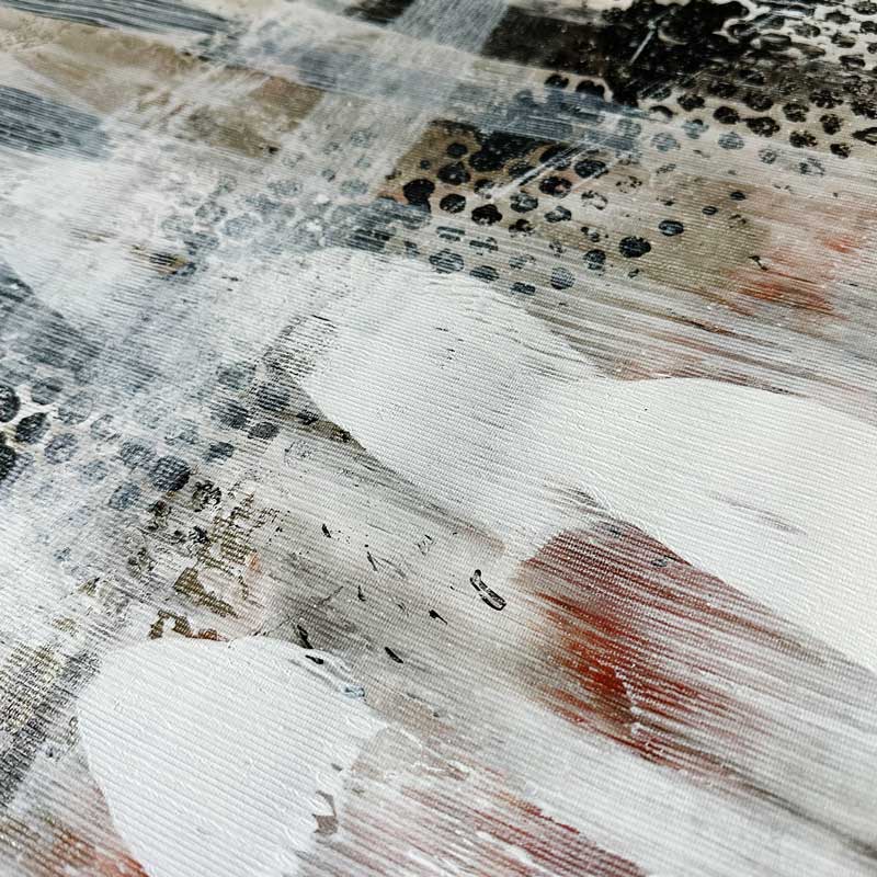 Akryl på handsträckt och grundmålad duk. Målningarna kommer uppspända på en kilram med en ståltråd baktill för att hänga upp tavlan.